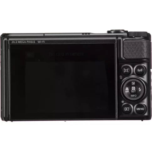 The 20.3MP sensor is also capable of 4K video and 4K time-lapse recording. Framing for videos and photos can be done via the 3.0″ LCD screen on the rear of the device, which can tilt 180° for selfies. Built-in Wi-Fi and Bluetooth allow the camera to connect to compatible mobile devices with the Canon Camera Connect app installed and enables quick editing and sharing of photos.