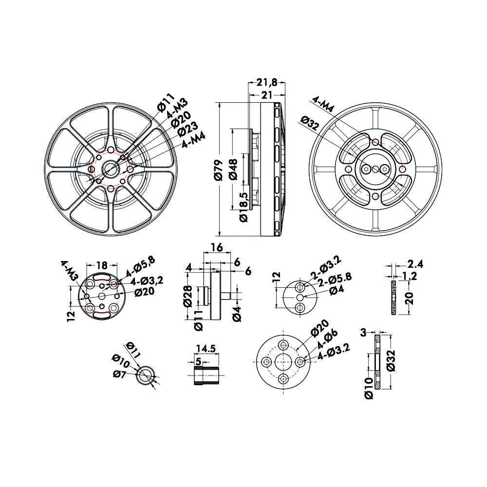 This Ultra lightweight Antigravity 7005 T-Motors are available with an anti-high temperature curved magnet which increases motor performance by 5%. Energy-saving Antigravity-type Tiger motors have 1.5kg thrust with an efficiency of 13g/W. This type of T motor is made with specially imported German 7075 aviation aluminum alloy, strengthening the motor cap with a lightweight design. Contains an open structure for better cooling performance.