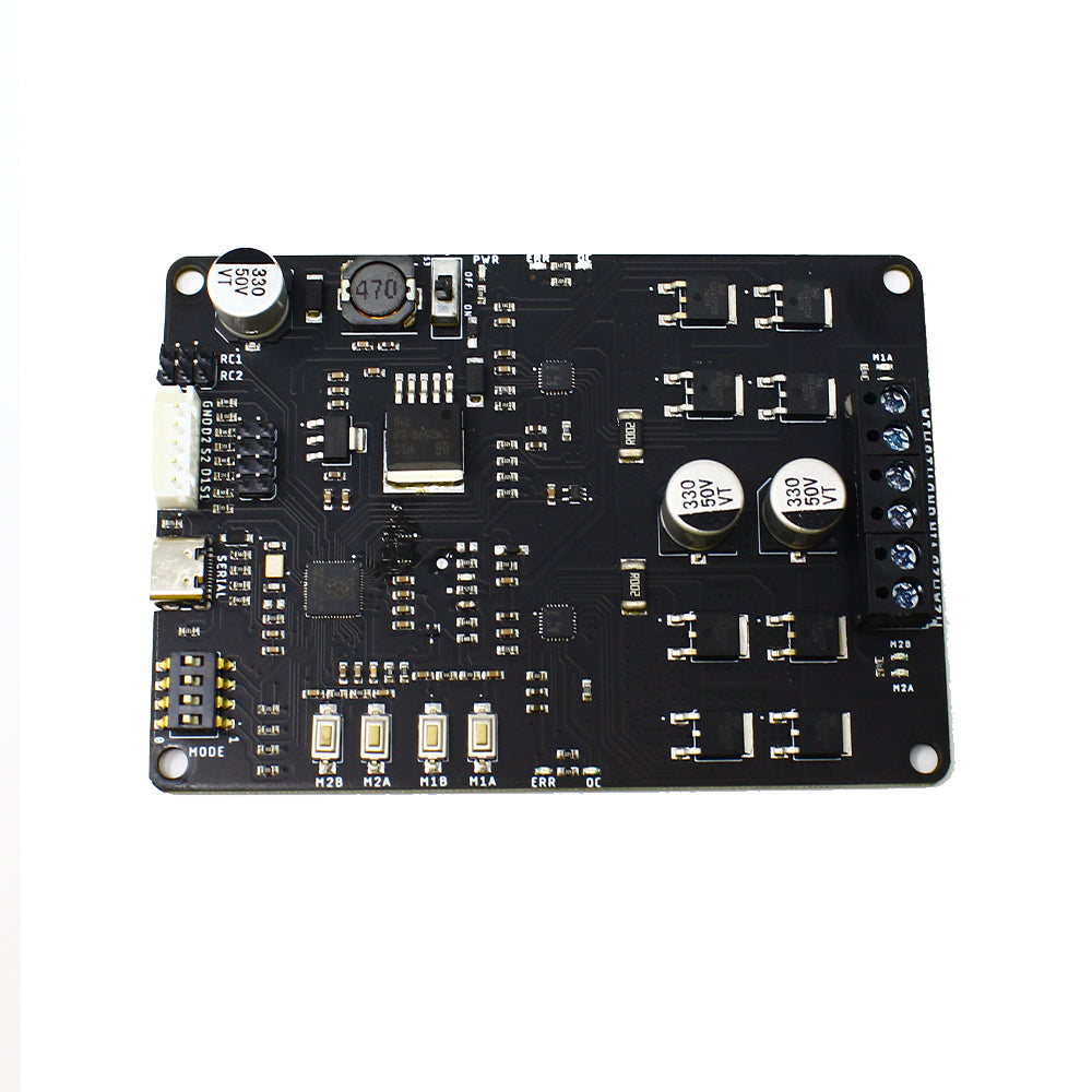 It comes with analog and PWM modes for operation. Switching between radio controls and PWM mode or switching between any of the 4 modes can be done with an onboard 4-position DPDT mode switch. MOSFETs are switched at 16 KHz to ensure quiet operation and no annoying whining sound. Besides, it is also equipped with a microcontroller unit to provide smart features such as multiple input modes current limit, and thermal protection.