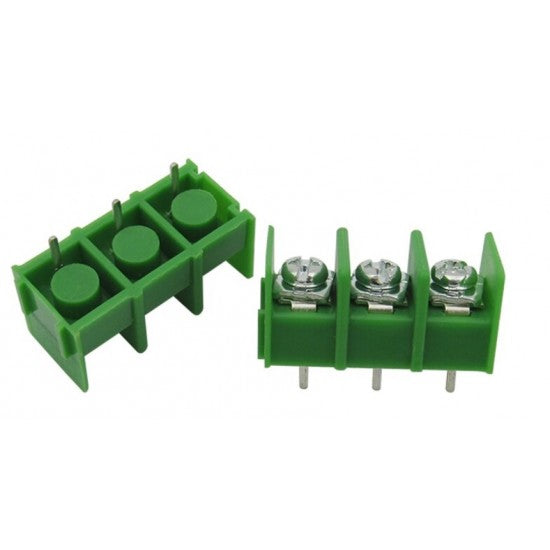 3 Pin screw terminal block with pin spacing of 8.5mm. Suitable for wires up to 12 to 22 AWG and power rating of 300V 20A. Ideal for variety of wire to board power connections.