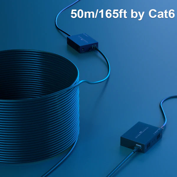 Long-Distance Transmission: Transmit HDMI video and audio signals up to 50 meters over a single CAT6 cable, allowing for flexible and extended connectivity.