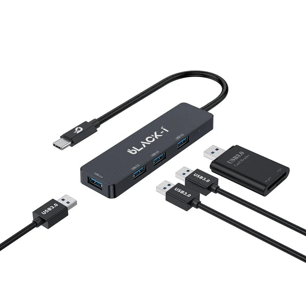 In summary, the Black-i Type C 4-Port USB 3.0 Hub provides a versatile and efficient solution for expanding your device connectivity options. Whether you need high-speed data transfer, backward compatibility, or a convenient charging port, this hub caters to various connectivity needs, all within a compact and lightweight design.