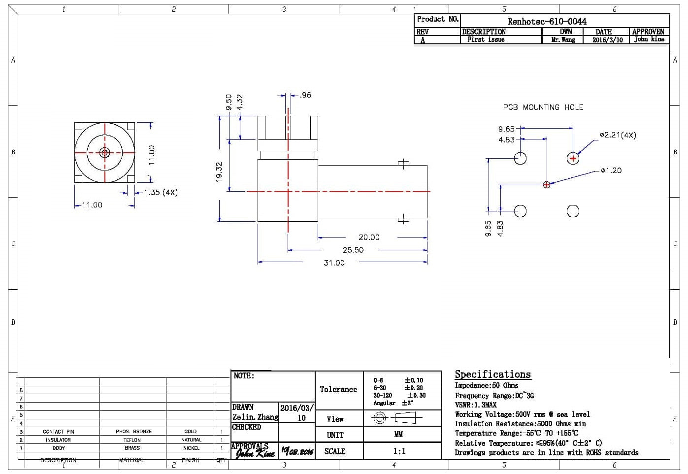 - Mating Durability: ≧500 cycles