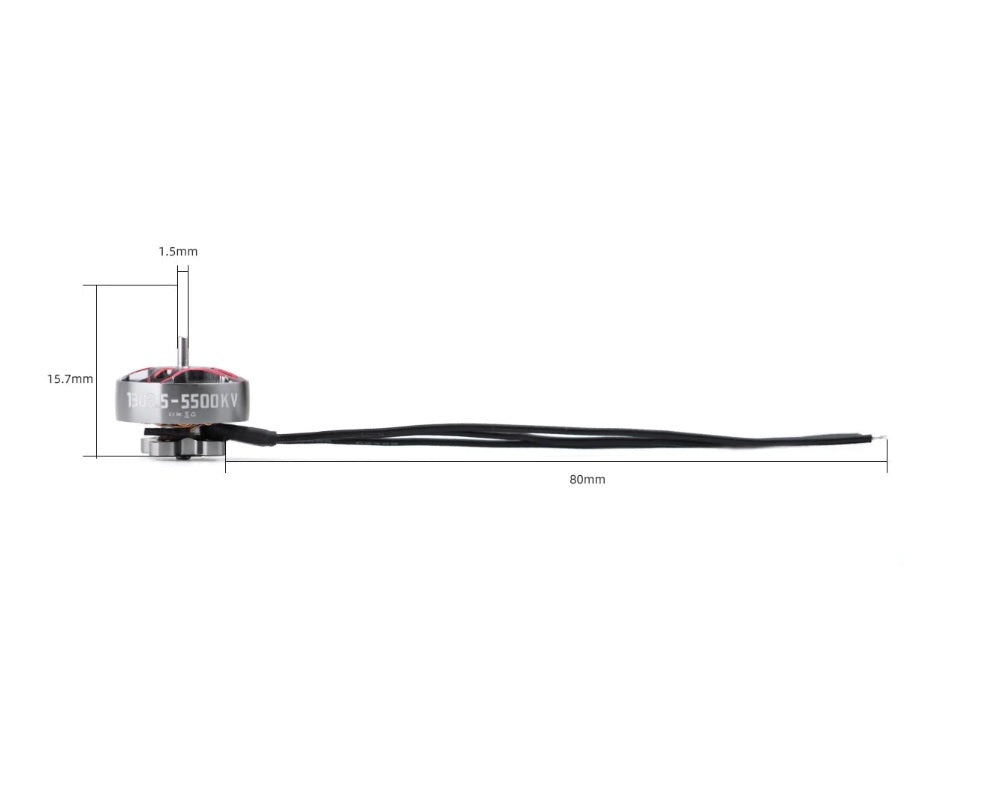Introducing the SPECTER 1303.5 5500KV Brushless Motor, a powerhouse for micro drones. Its brand-new rotor design, crafted from high-strength 7075 aviation aluminum, features customized N52H magnetic steel for exceptional torque. The 200°C copper wire winding and Kawasaki silicon steel sheets ensure stability and efficiency, while new tuning provides high torque at low speed and precise responses. With an alloy steel outlet shaft, this motor is robust yet lightweight, ideal for 2-2.5 Tiny drones or 2-3 toothpick drones. Weighing 7.15g, it’s a compact solution for dynamic flight experiences