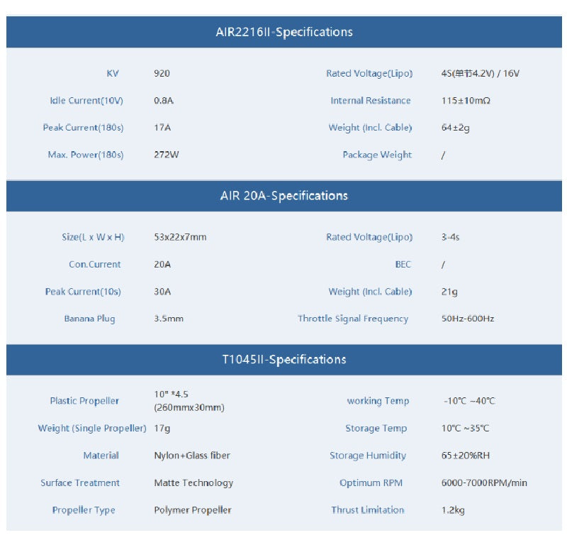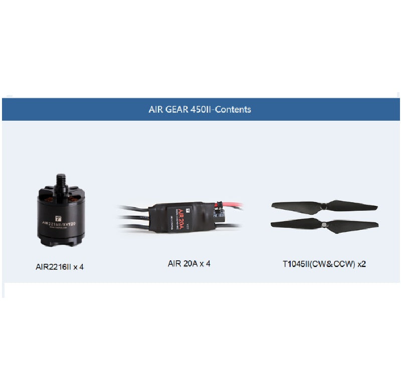 The T Motor Air Gear 450 Combo is a high-performance propulsion system designed for drones and multirotor aircraft. This comprehensive kit includes powerful motors, efficient electronic speed controllers (ESCs), and well-balanced propellers. It offers reliable and precise control, making it an ideal choice for both amateur and professional drone enthusiasts seeking improved flight performance and stability.