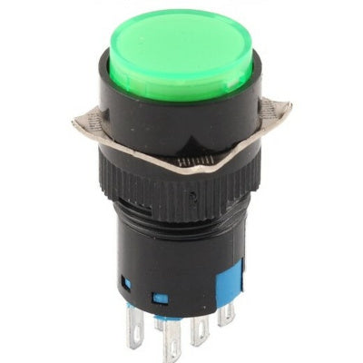 ProMax PST16240GL Push Button Latching Switch Round 240V Green Indicator Light