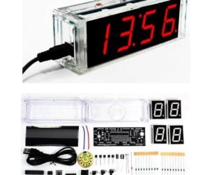 DIY Kit Red LED Electronic Microcontroller Digital Clock Time Thermometer With Talking Clock and PDF with Speaker